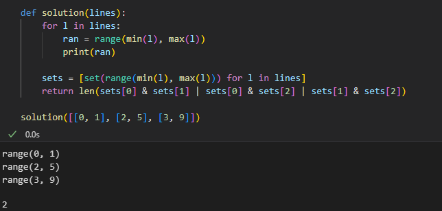 각 리스트 요소의 범위를 다 구해서 겹치는 값들의 길이로 구하는 방식이라는데..
