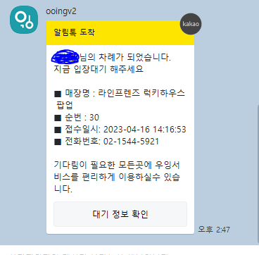 구경하다보니 아래와 같이 알림톡이 왔다!