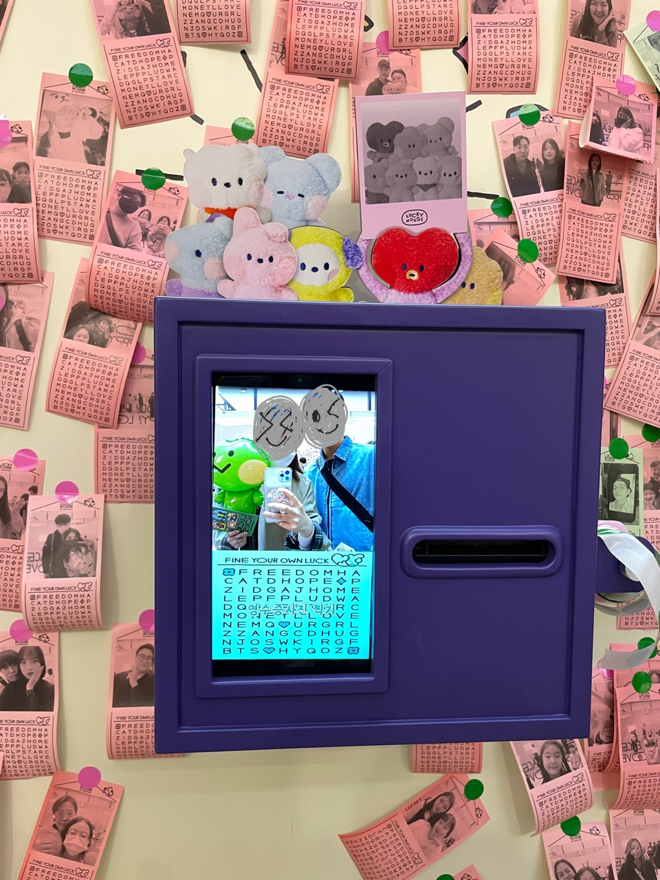 라인 프렌즈 럭키하우스에서 물건을 사면 뽑기로 스티커를 얻을 수 있는데