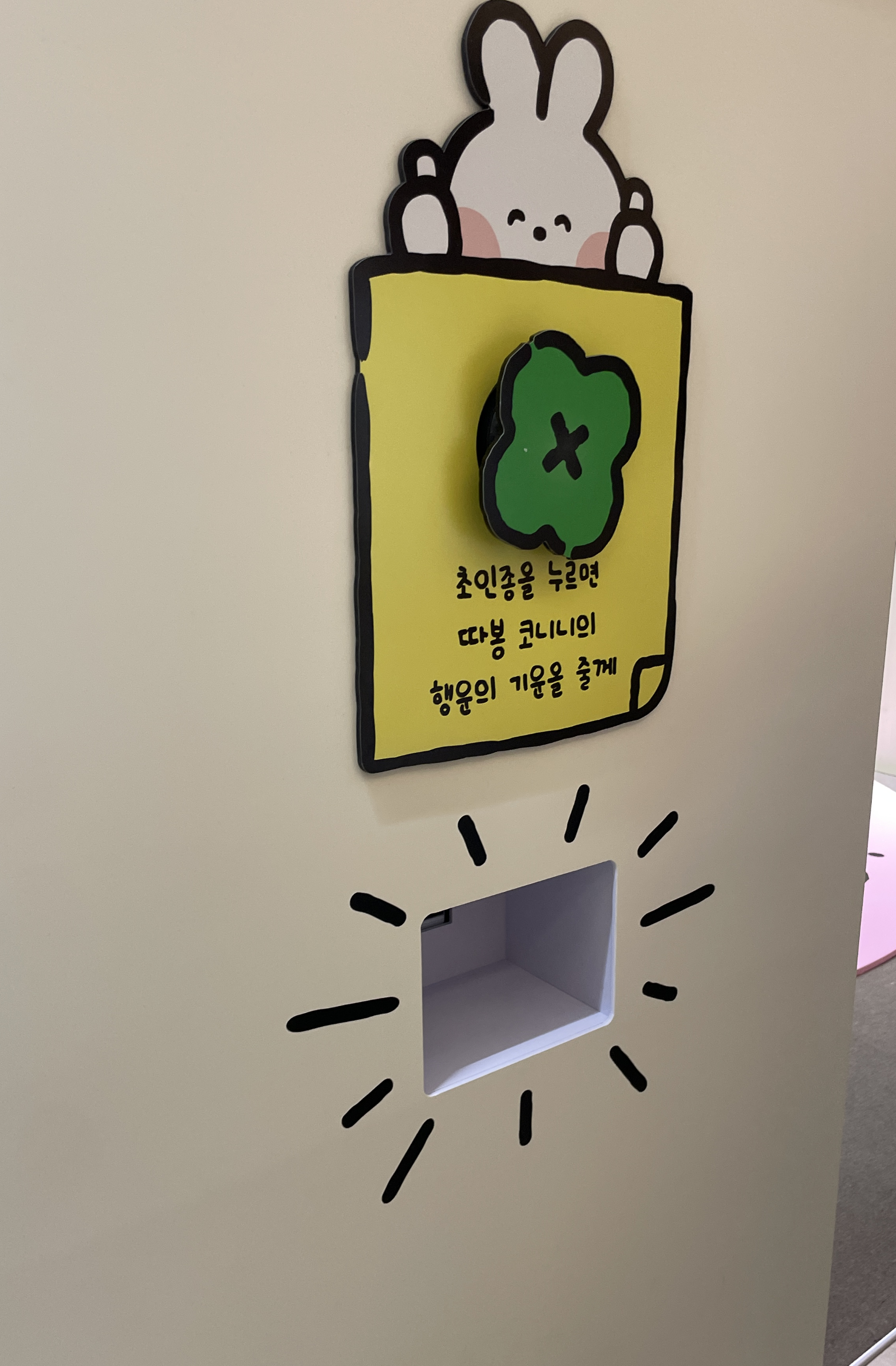 직원분께서 행운의 카드를 뽑아주세요! 하면 코니니 밑에 있는 네잎 클로버 버튼을 누르면 된다..
