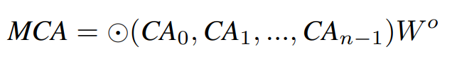 - $CA_{i}$를 channel-wise connection과 linear projection $W^{o}$으로 처리함