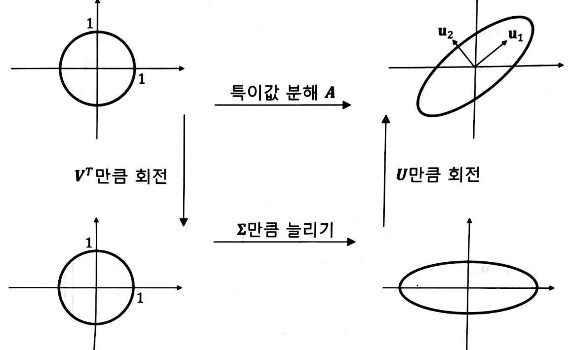 - $U, V^{T}$ : 고유벡터로 기존의 행렬을 회전하는 것