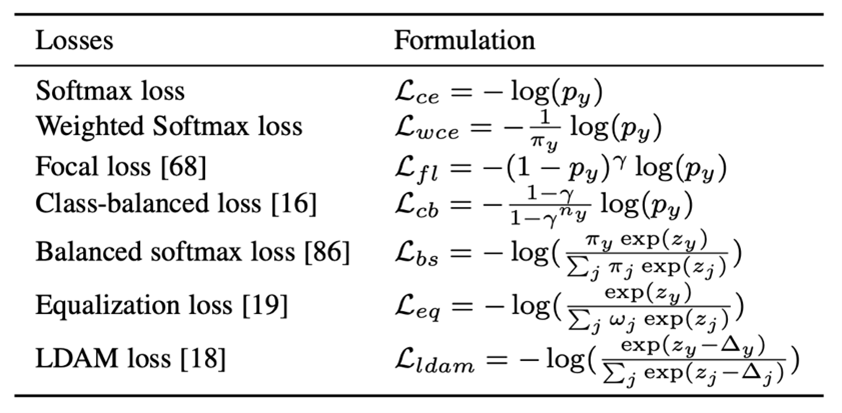 - LTD를 개선하기 위한 방법에는 Re-sampling, Cost-Sensitive Learning, Transfer Learning, Representation Learning, Decoupled Training이 있음