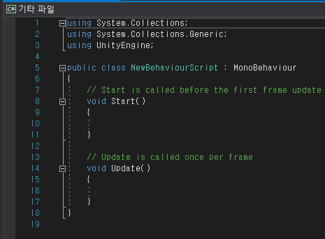유니티 에디터에서 c# 스크립트는 Project View에서 Assets파일에 원하는 파일을 만든다.