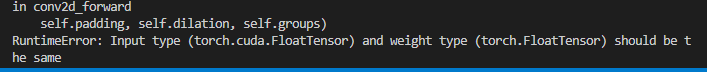 이 문제는 모델은 GPU에 있지만, 데이터는 CPU에 있기 때문에 나오는 문제이다. 따라서 입력 tensor를 GPU로 보내도록 주석 해제를 하면 에러가 해결된다.