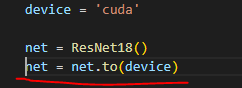 주석을 풀고 GPU할당을 하도록 하여 .cuda()에 대한 오류를 해결하였다.